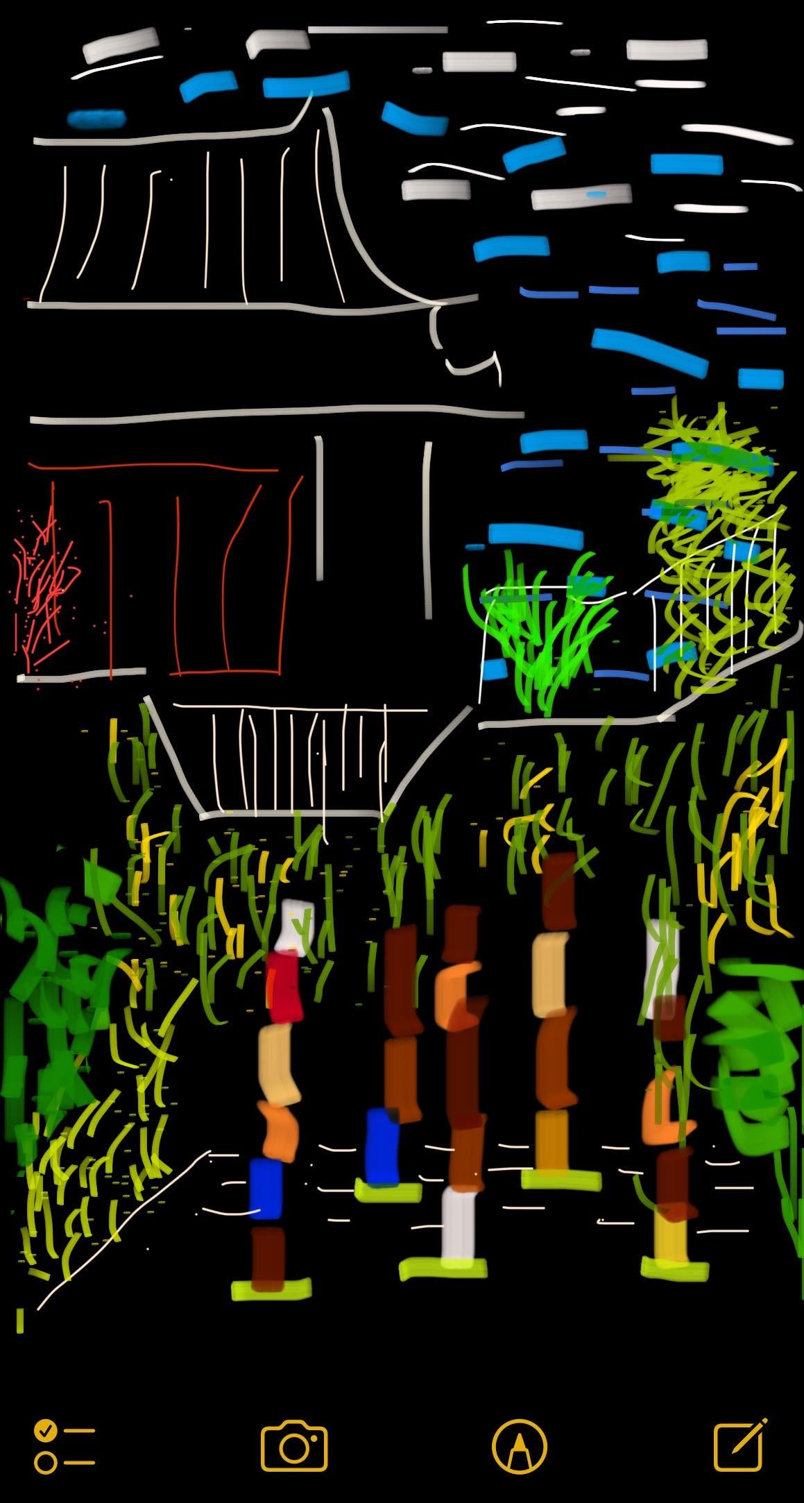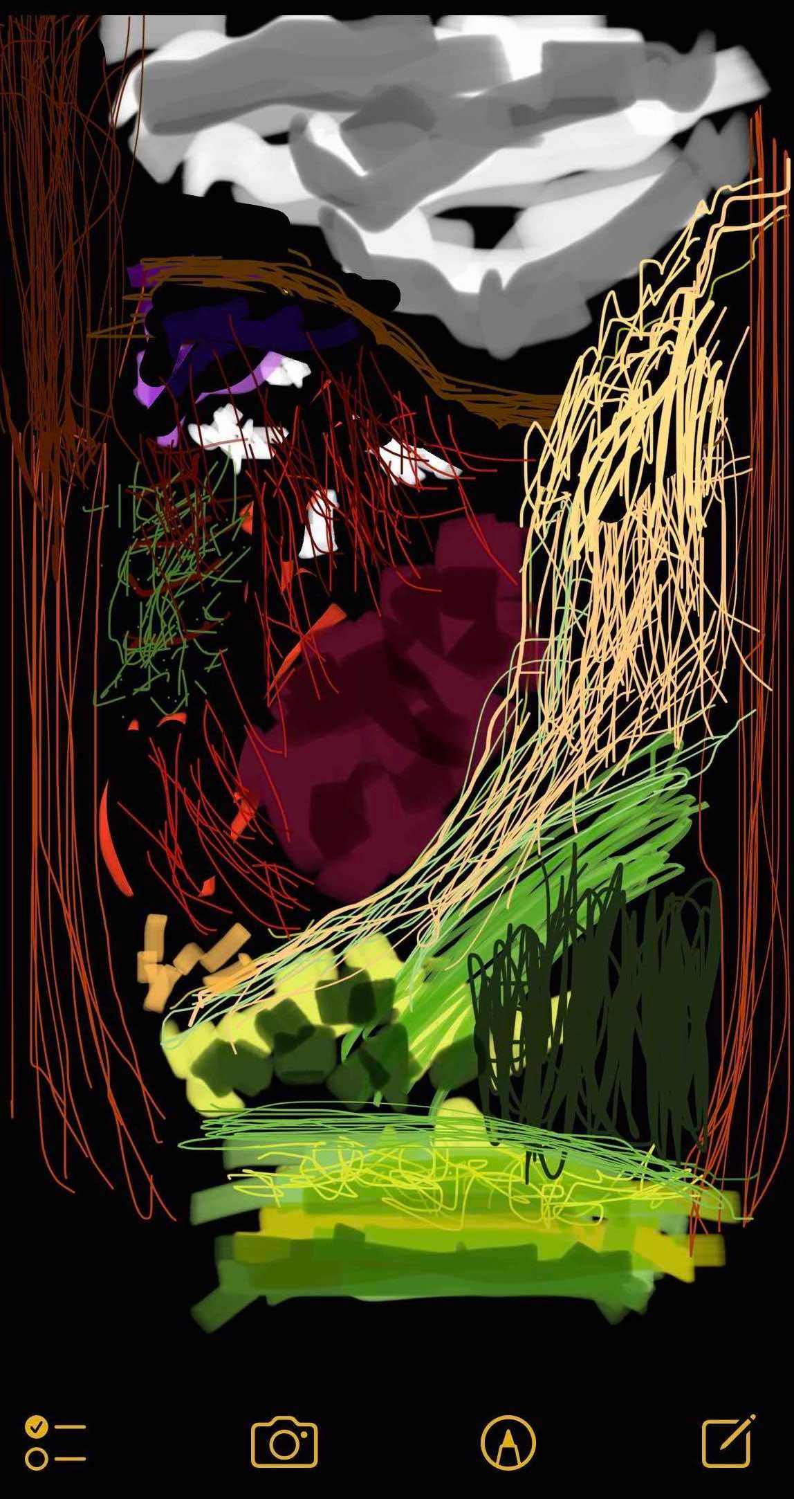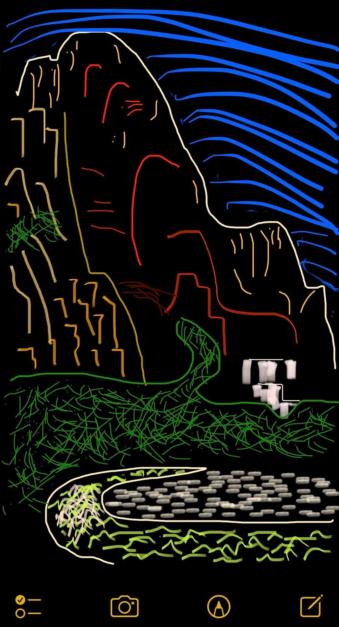 I didn’t have any art supplies, but I did have my phone. Yes, it was the same phone that took that forgettable picture back there that didn’t really capture it at all. But it was also the same phone that had a pencil looking thing at the bottom of that Notes app that I so often accidentally hit and quickly closed in frustration. Aha!
