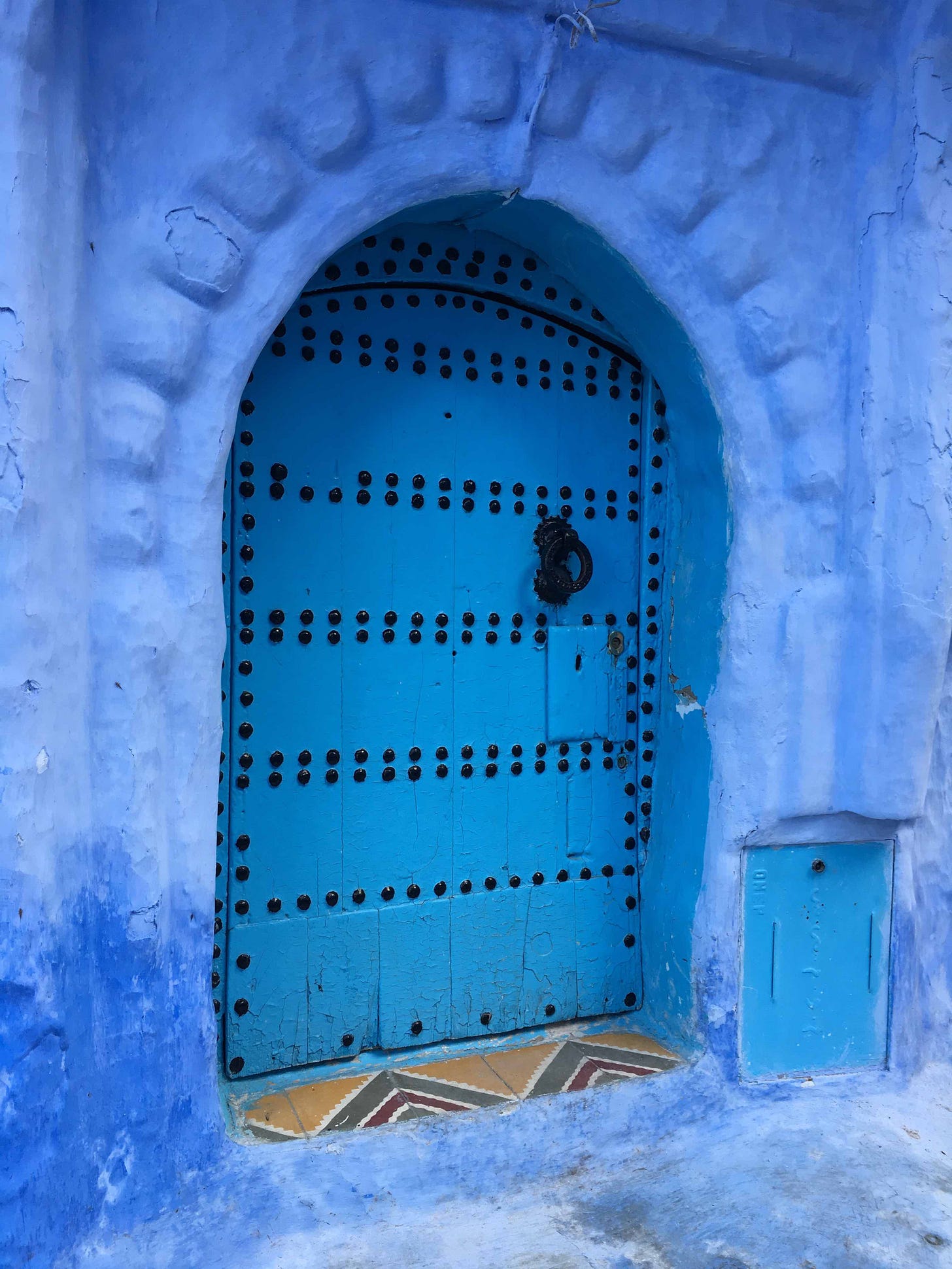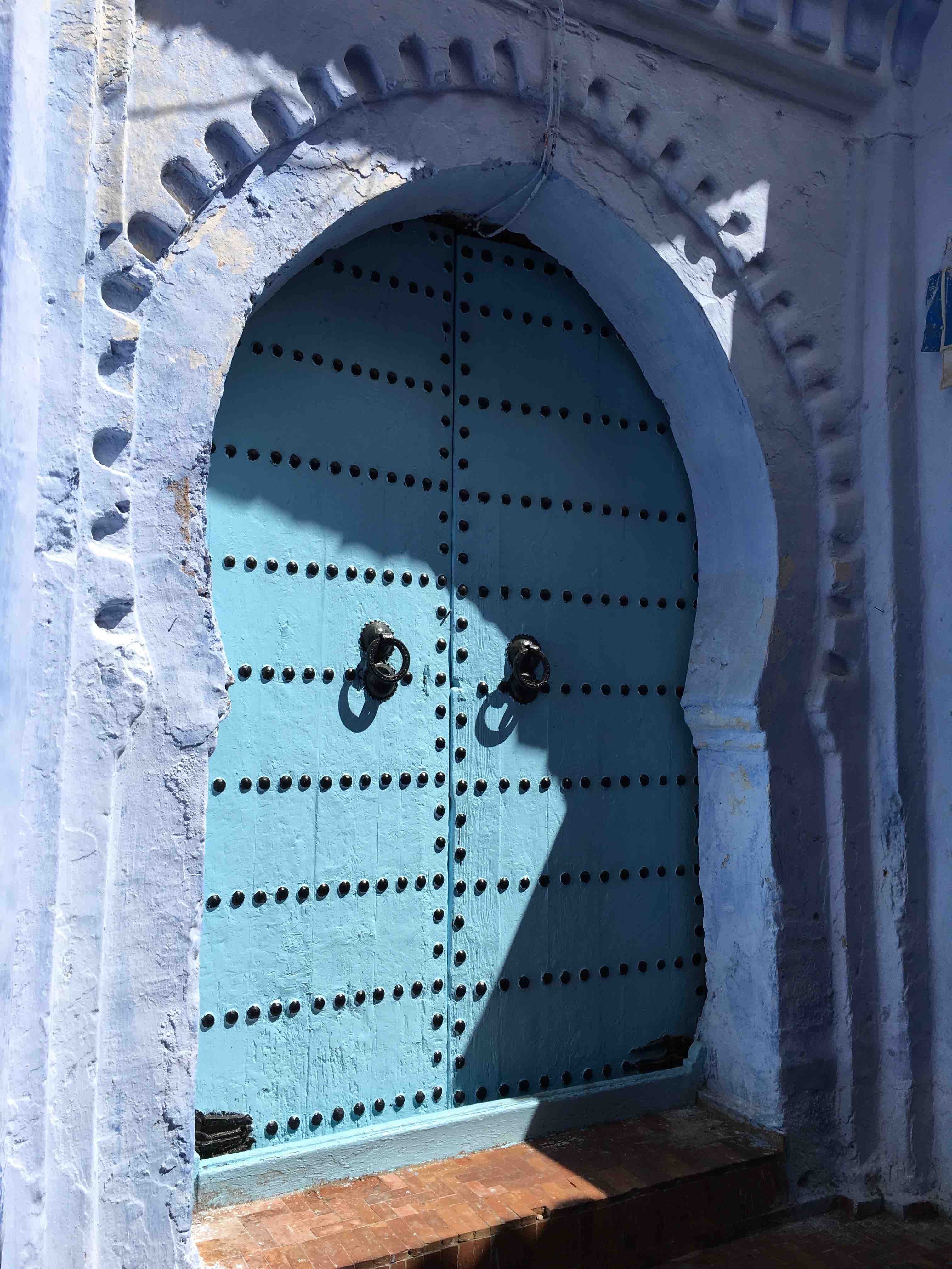 Having just weathered a super spooky sleepless night that we weren’t absolutely sure that we were going to make it through alive, Rocky and I could withstand a little luxury. Off to the uppity hotel we went. Thankfully, we had asked to see the room first. A super strange layout, coupled with a difficult bed situation in a hot and stuffy room, quickly burst our bubbles. The price was pretty spendy too, at least on Moroccan standards, even after splitting in half. Quickly dispensing with this option, we marched off to the far corner of town to take a peek behind Door No. 2.