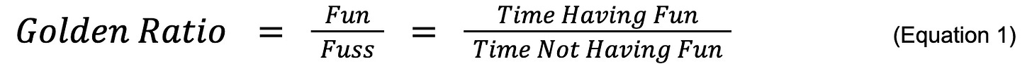 My fellow minimalist ultralight travelers, The Golden Ratio is easy to pack and use for all your adventures. It weighs nothing, is simple in form, and can be applied to all kinds of things whether they be small daily outings, sightseeing tours, special events, long epic adventures, or even entire vacations themselves. Its versatility ranges from the most mundane domestic activities to far-flung international travel destinations across the globe. Quite simply, the fun-to-fuss factor can make or break a trip.