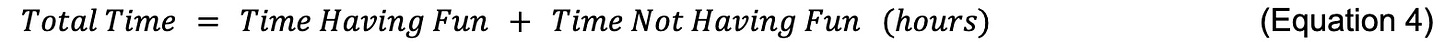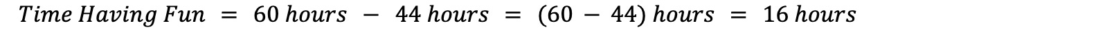 With only 60 hours of Total Time to play with, we’d only be left with 16 hours of Time Having Fun per a rearranged Equation 4: